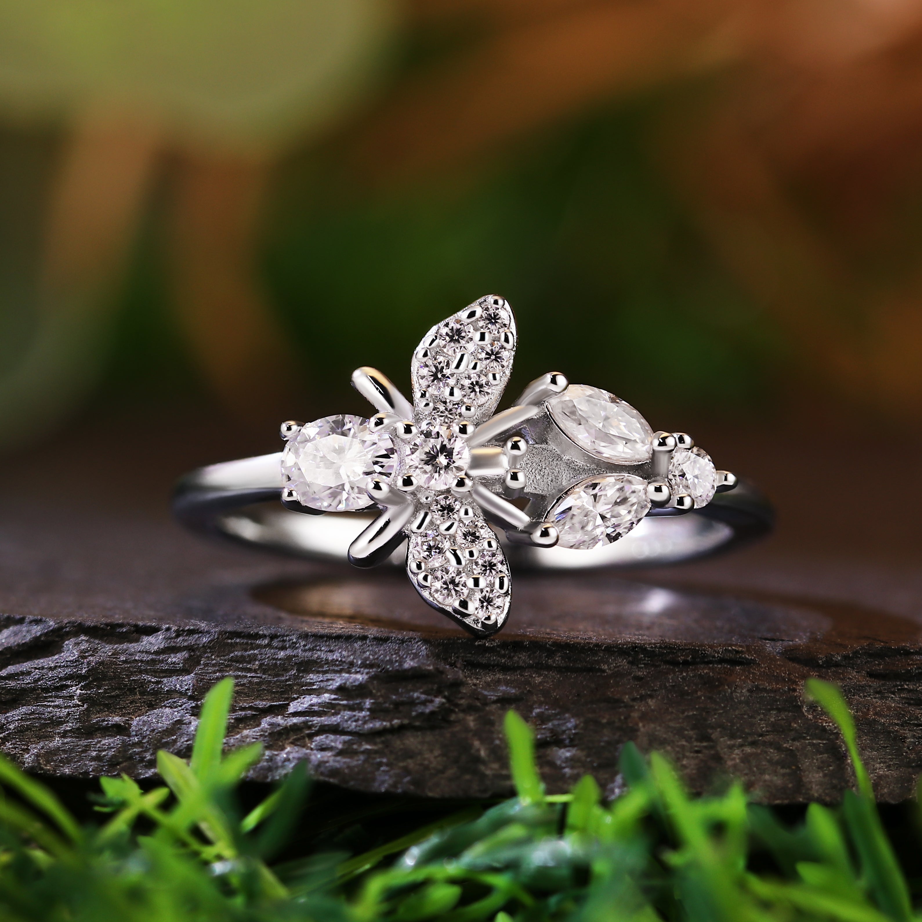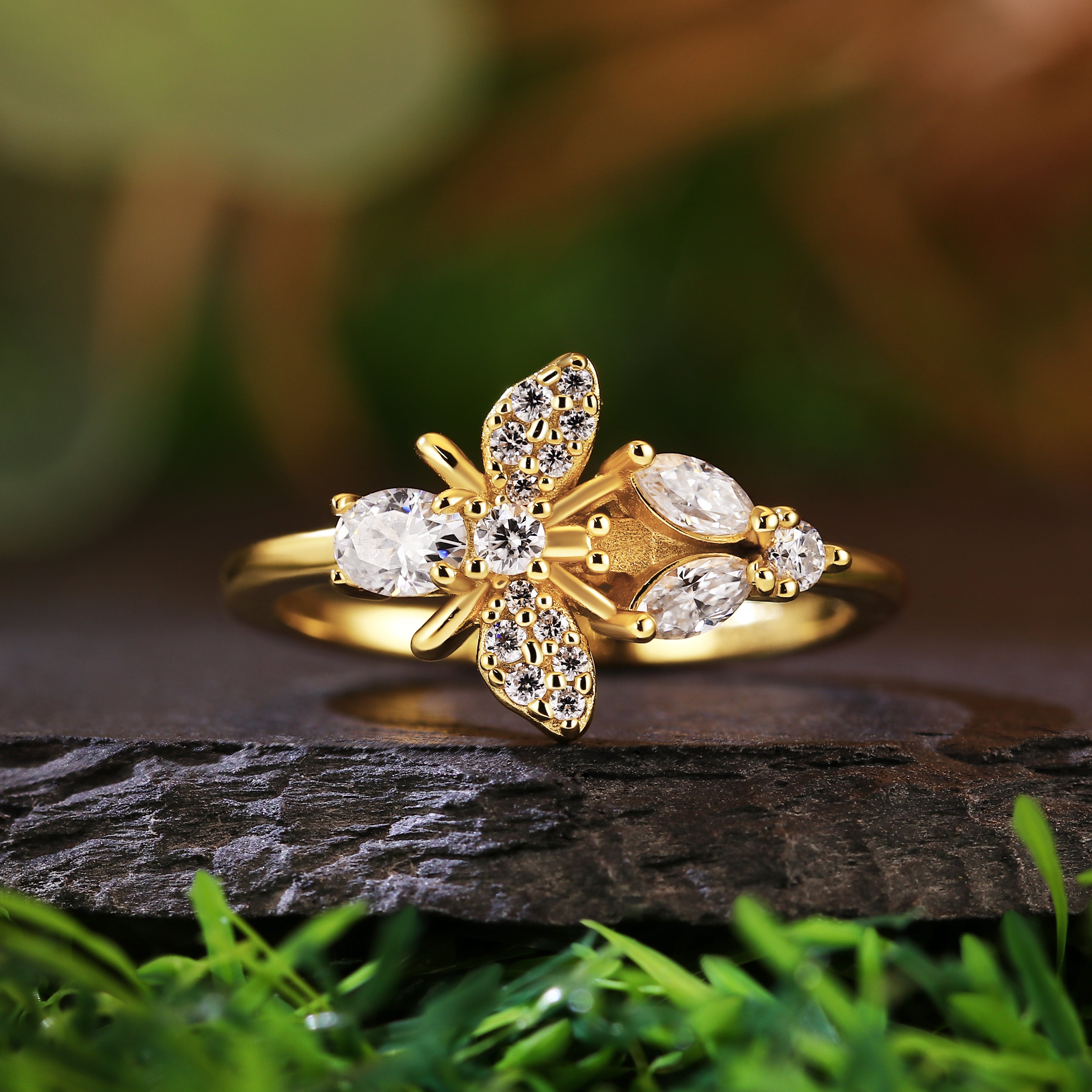 Unique Bee Nature Inspired Marquise Cut and Oval Cut Engagement Ring