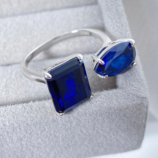 0.89 ct Asscher Lab Sapphire Solitaire Engagement Ring