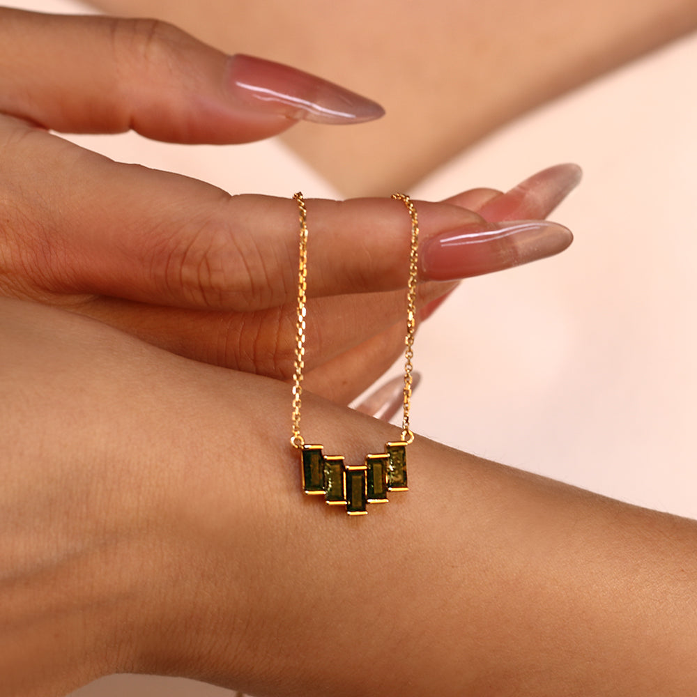 Geometric Staggered 3x6mm Baguette Cut Natural Moss Agate Pendant Necklace Geometric Staggered 3x6mm Baguette Cut Natural Moss Agate Pendant Necklace