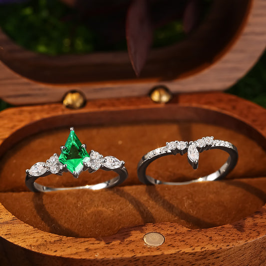 Anillo de compromiso con halo de esmeraldas de laboratorio ovaladas de 1 ct
