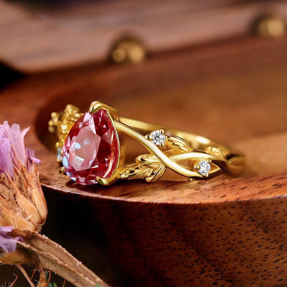 1.61ct Pear Cut Lab Alexandrite Nature Inspired Twig Leaf Engagement Ring
