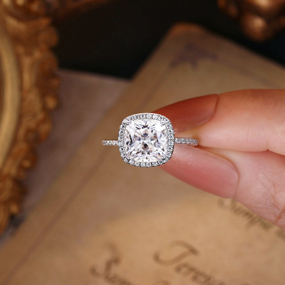 Anillo de compromiso con halo de esmeraldas de laboratorio ovaladas de 1 ct