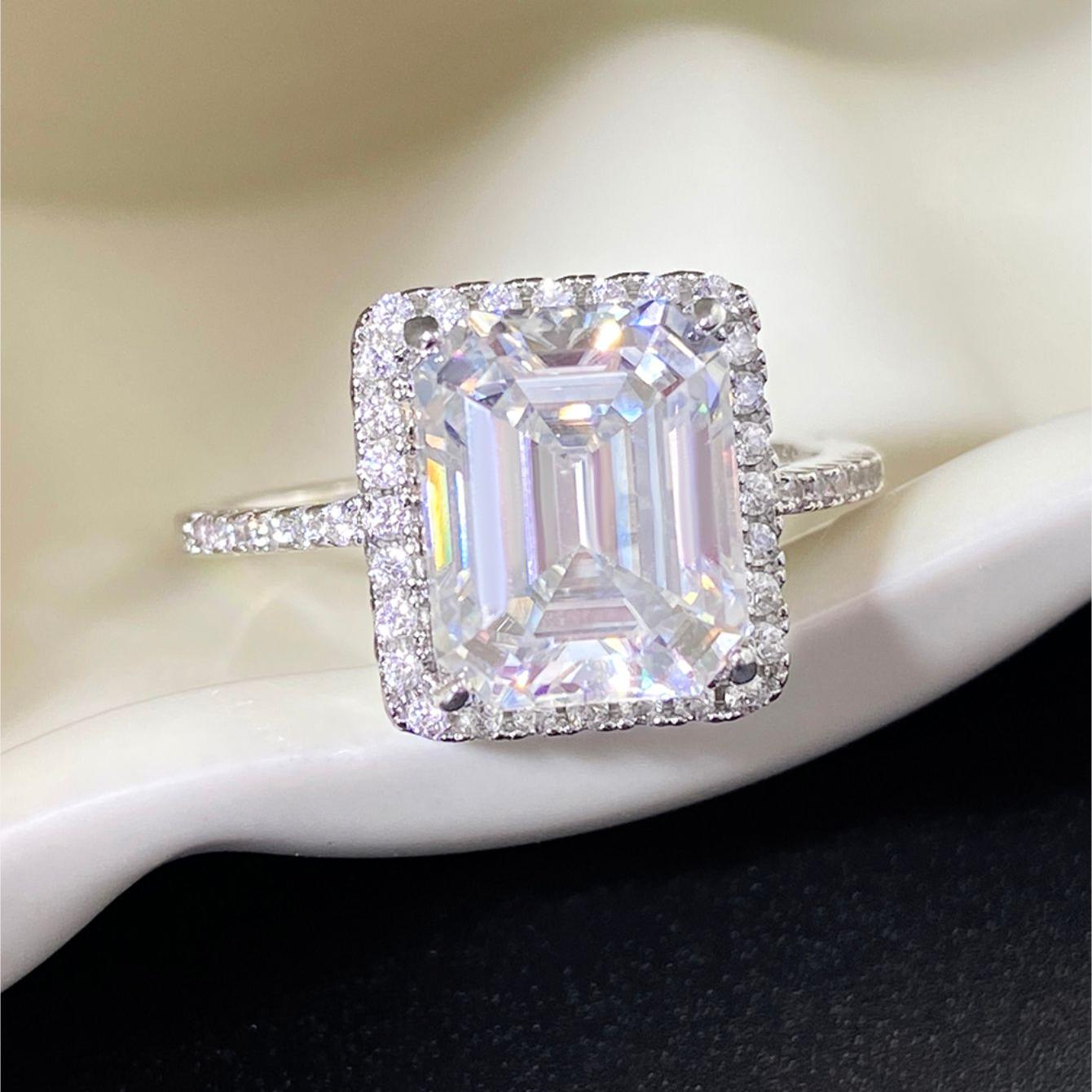 Anillo de compromiso con halo de esmeraldas de laboratorio ovaladas de 1 ct