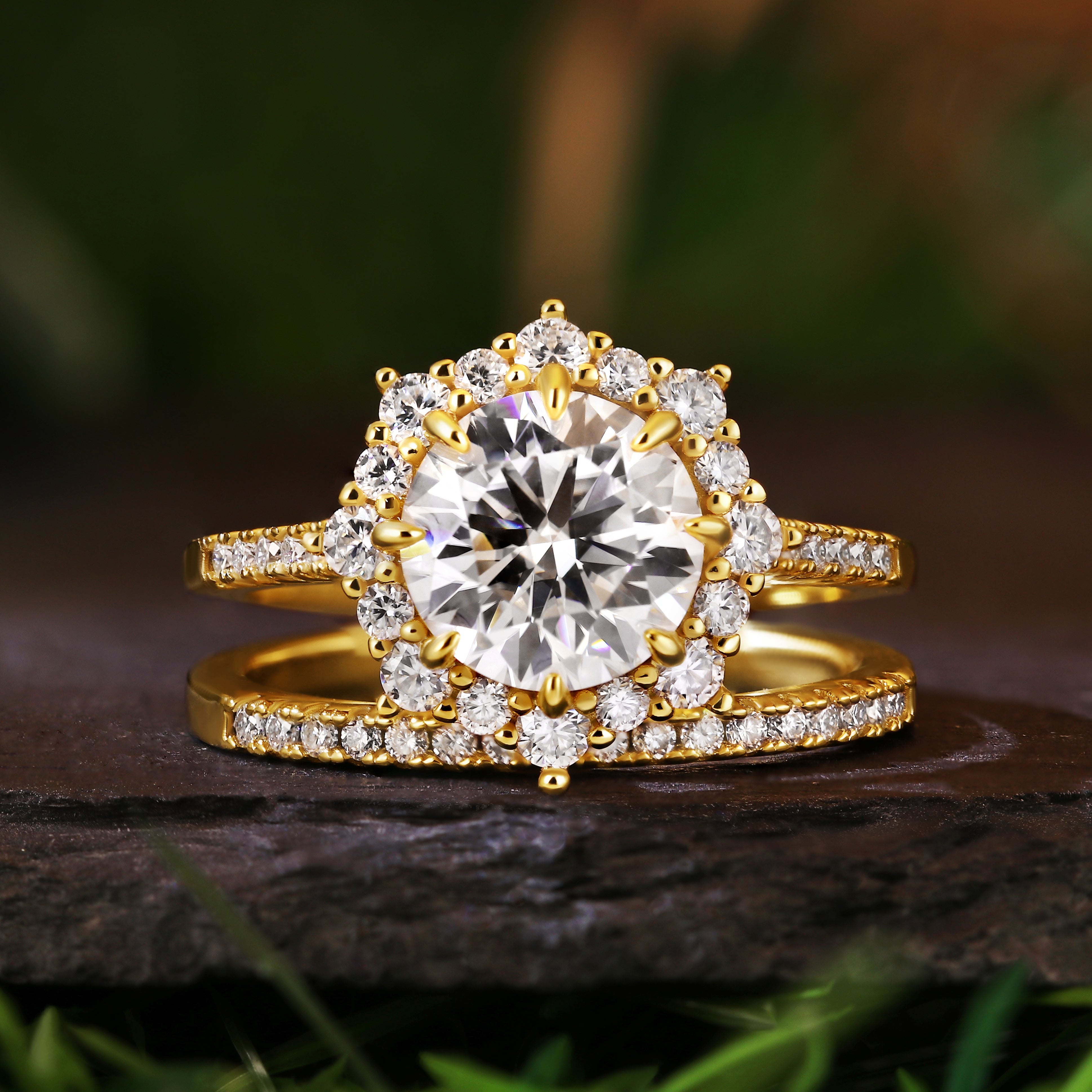 • Vintage Floral Halo 2.6ct Round Cut Moissanite & Wedding Band