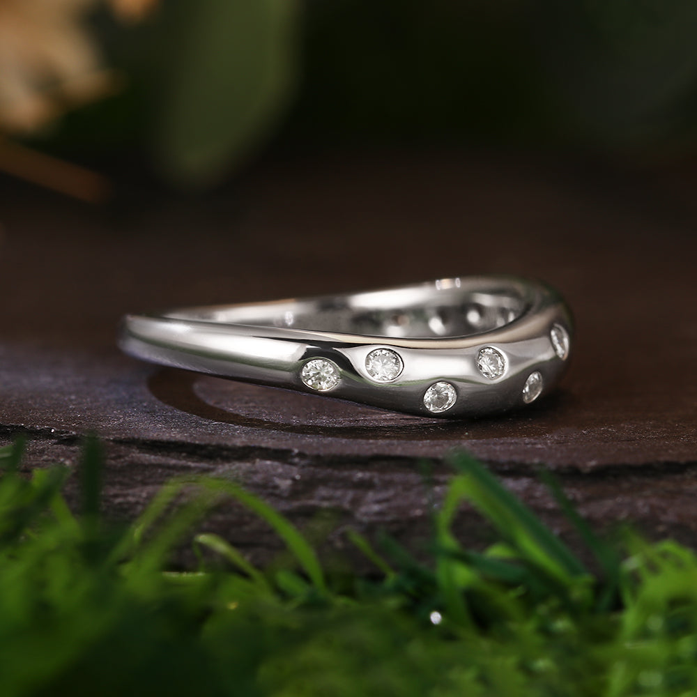Contoured Wave Band with Round Cut Moissanite Accents Modern Elegant Engagement Band Contoured Wave Band with Round Cut Moissanite Accents Modern Elegant Engagement Band