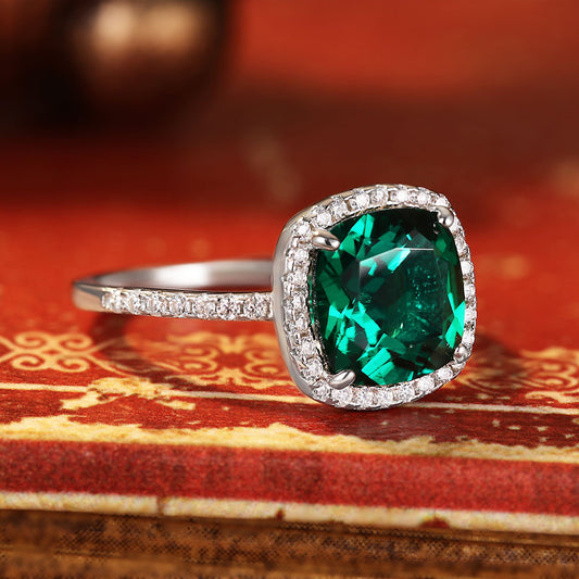 Bague de fiançailles avec halo d'émeraude ovale de laboratoire de 1 ct