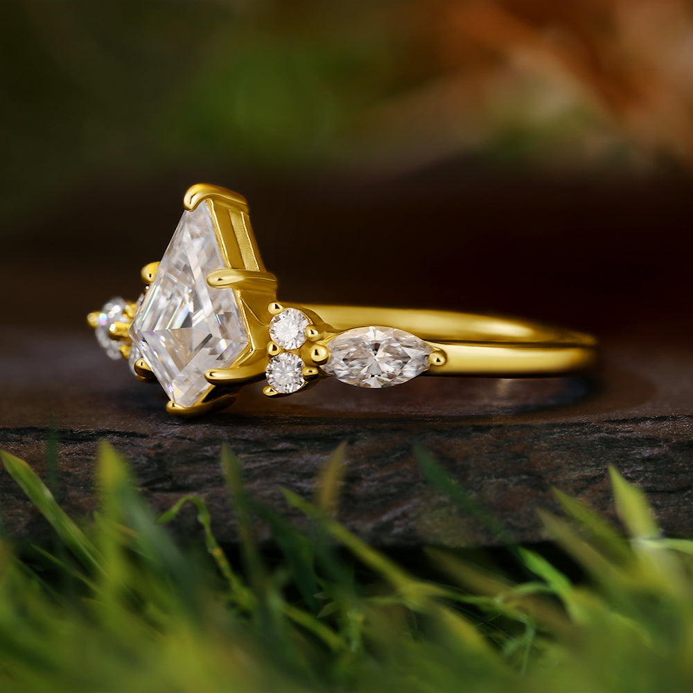 • 1.45 ct Kite Cut Moissanite Cluster Engagement Ring
