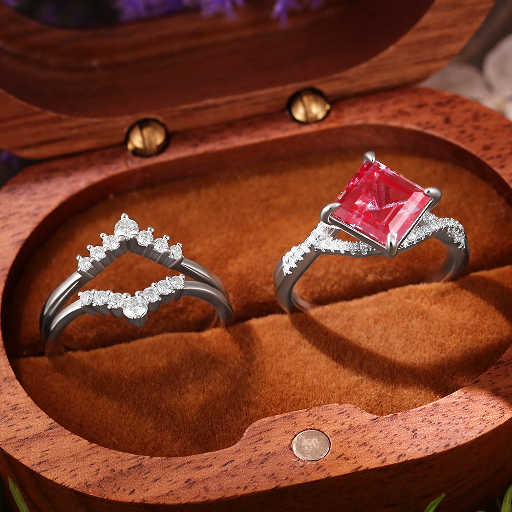 2.48 ct Square Cut Lab Alexandrite Vintage Twsited Ring Curved Stacking Ring Bridal Ring Set
