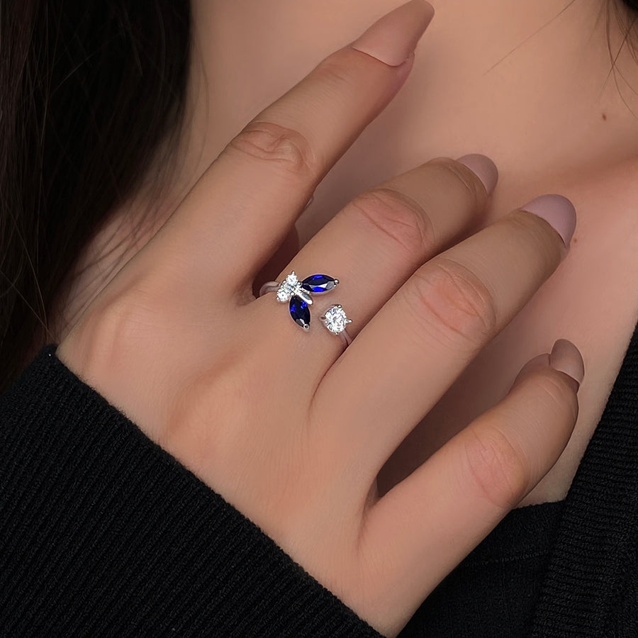 0.48 ct Marquis Lab Sapphire Butterfly Open band Engagement Ring with Round Moissanite