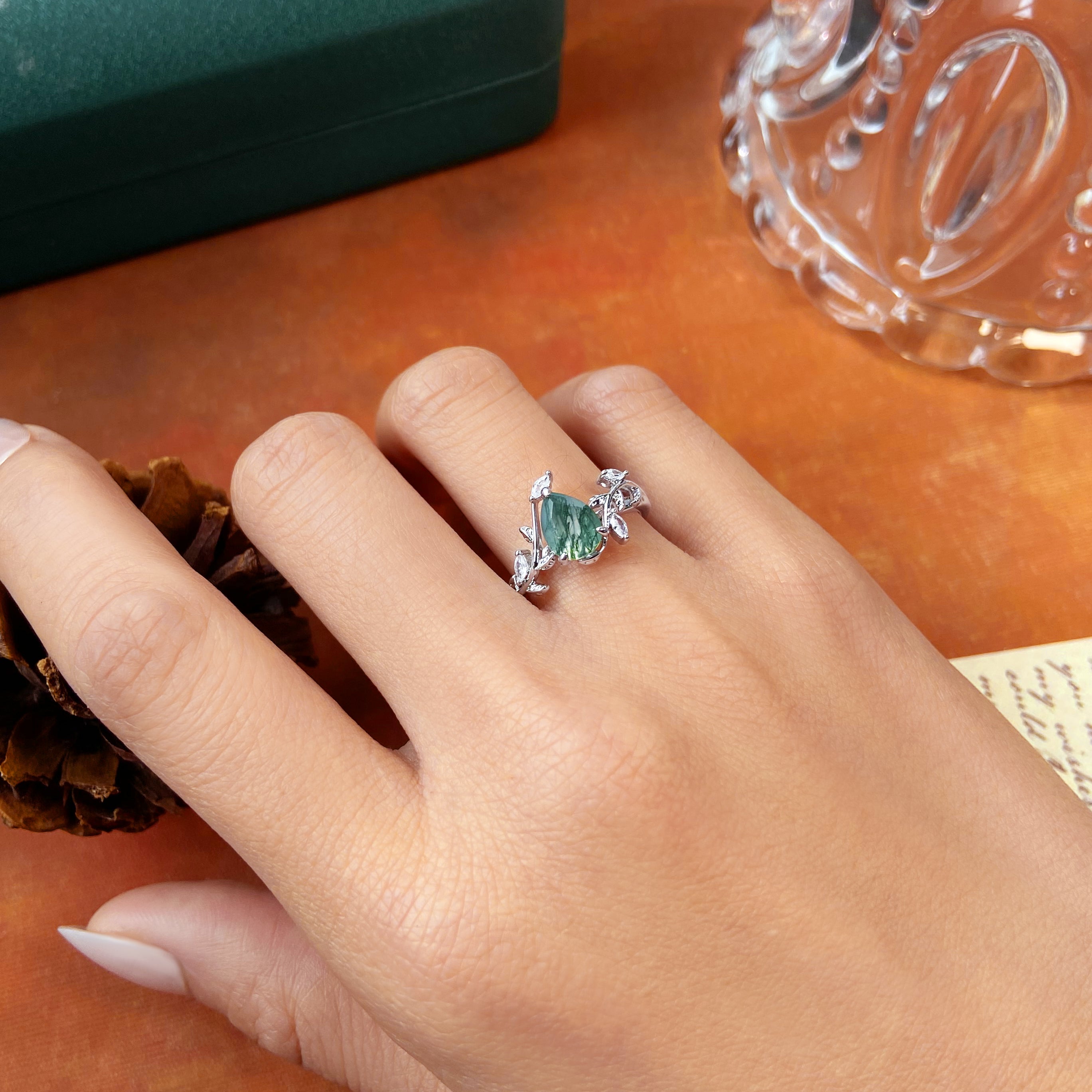 Nature Inspired Vine & Leaf 6x8mm Pear Cut Moss Agate Engagement Ring Nature Inspired Vine & Leaf 6x8mm Pear Cut Moss Agate Engagement Ring Nature Inspired Vine & Leaf 6x8mm Pear Cut Moss Agate Engagement Ring Nature Inspired Vine & Leaf 6x8mm Pear Cut Moss Agate Engagement Ring